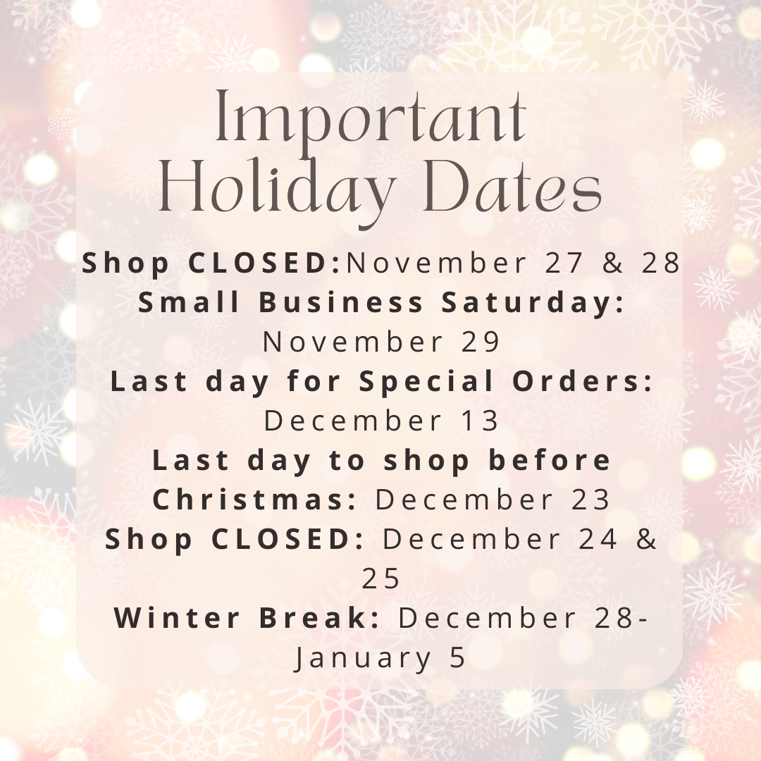Please keep these dates in mind over the next few weeks as you plan out your holiday shopping.