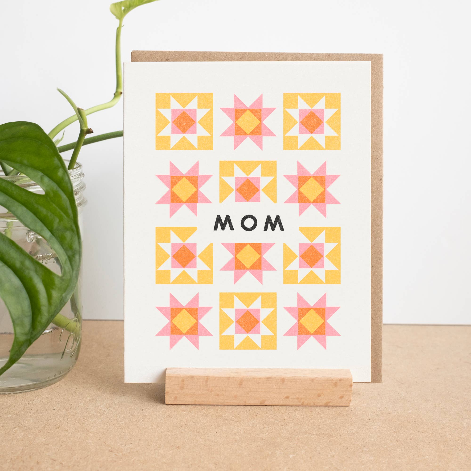 For the mom who puts it all together. A colorful and geometric quilt block inspired design to celebrate mom on Mother's Day or any day.