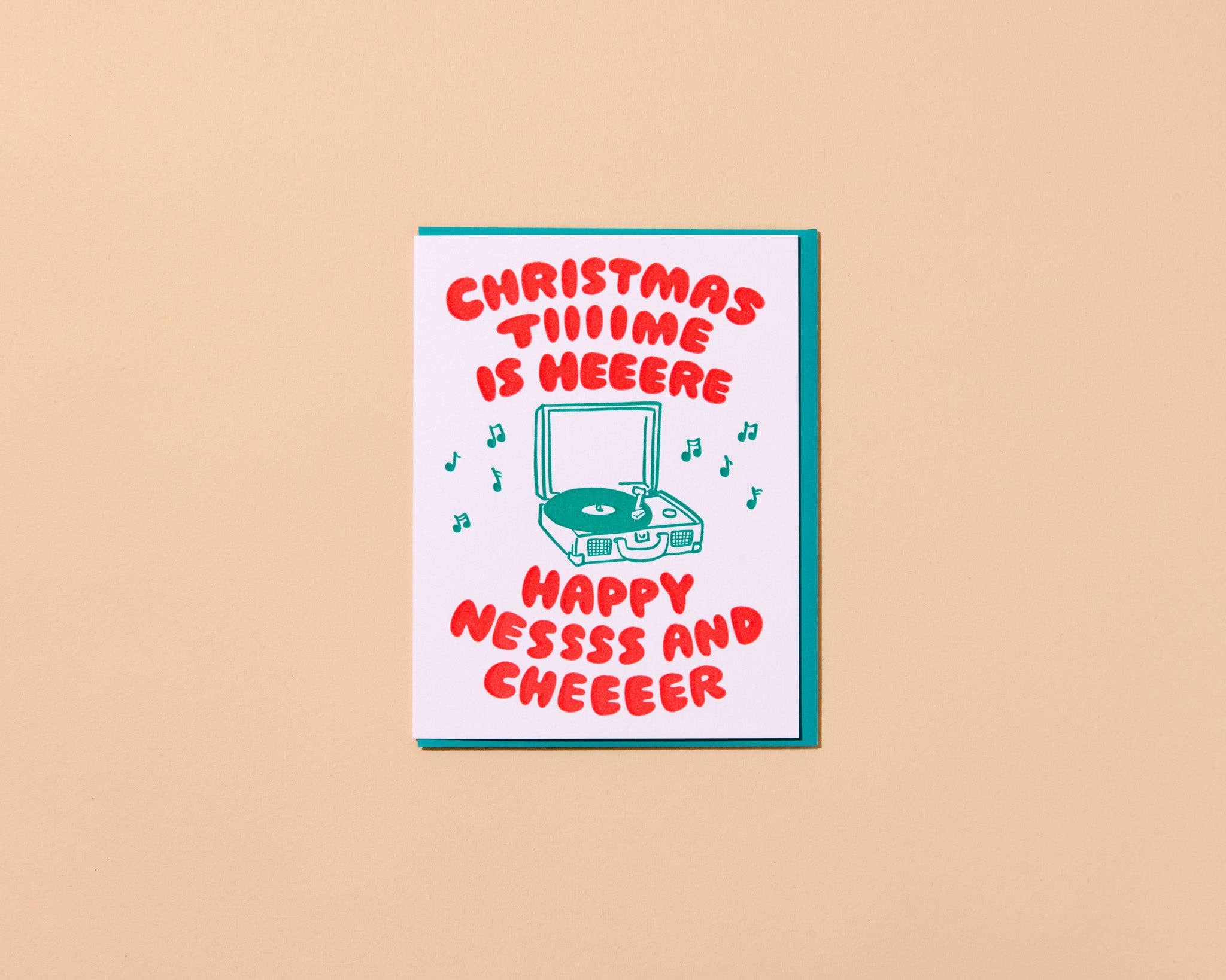• Card reads, "Christmas Tiiiime is here happy nessss and cheeeer"